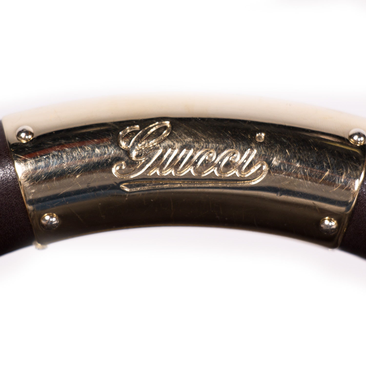 Details: Dark Brown Leather / Gold-Tone Hardware / Single Rolled Handle / Beige Printed Canvas Lining / Single Compartment / Zipper And Phone Pocket At Interior Wall / Front Flap Closure Featuring Bamboo And Tassel Adornment