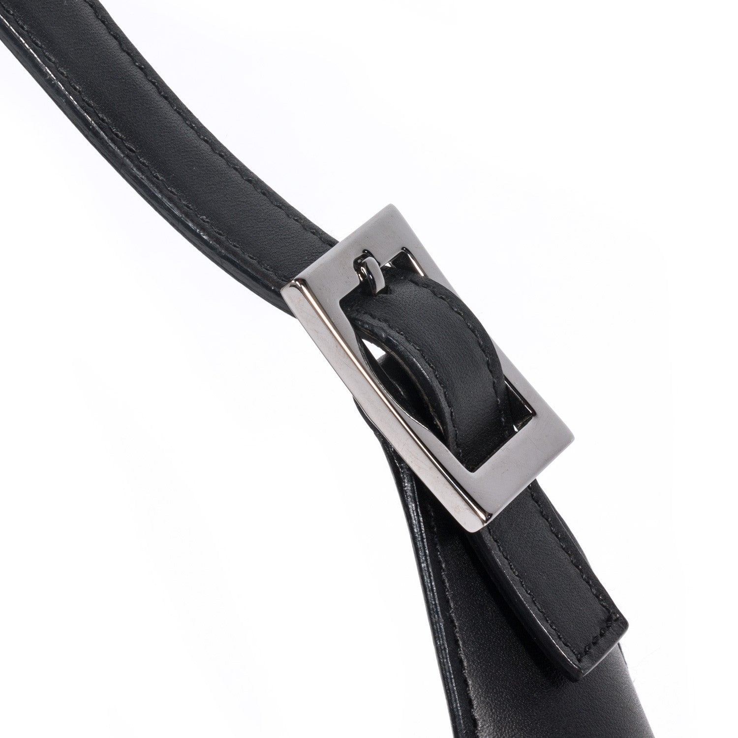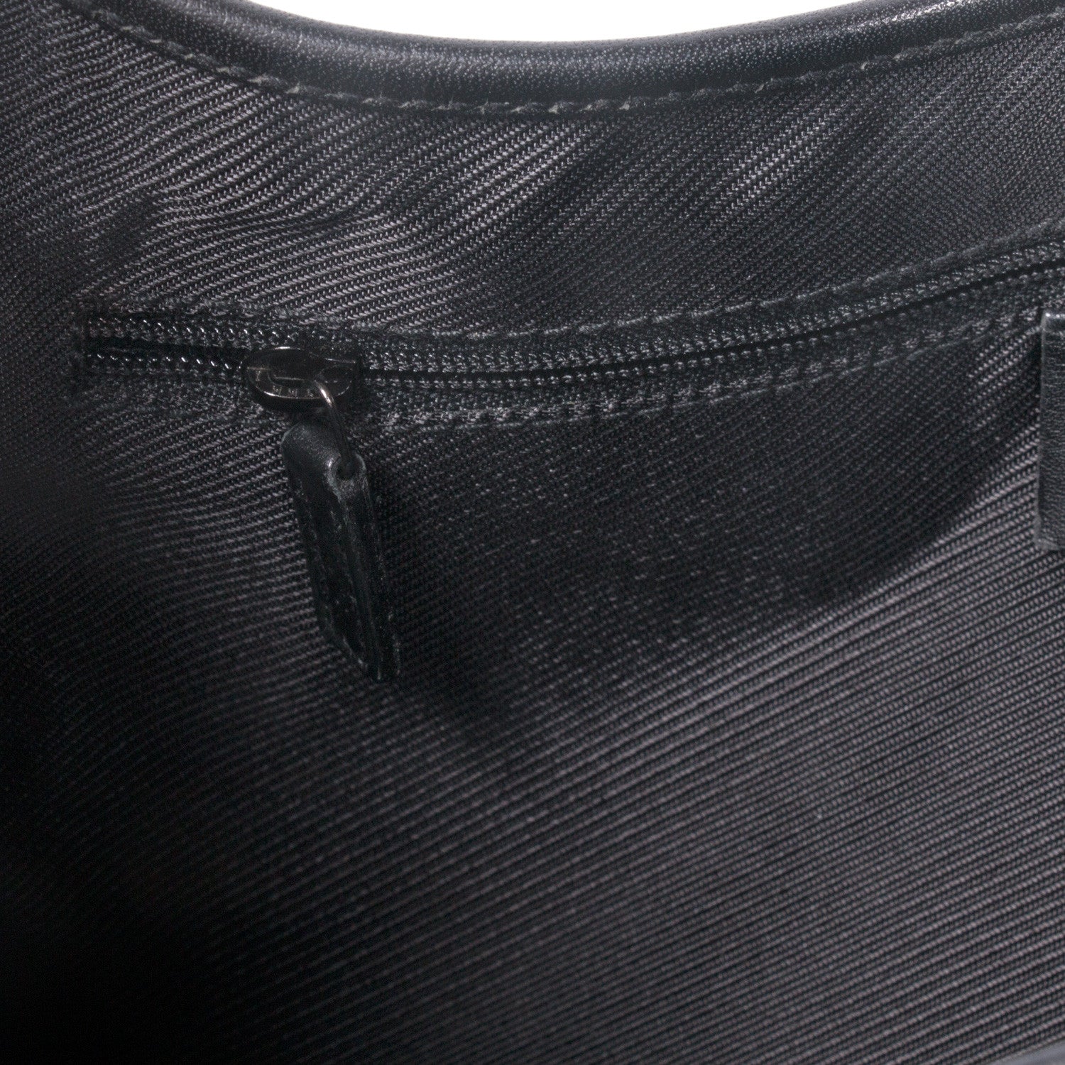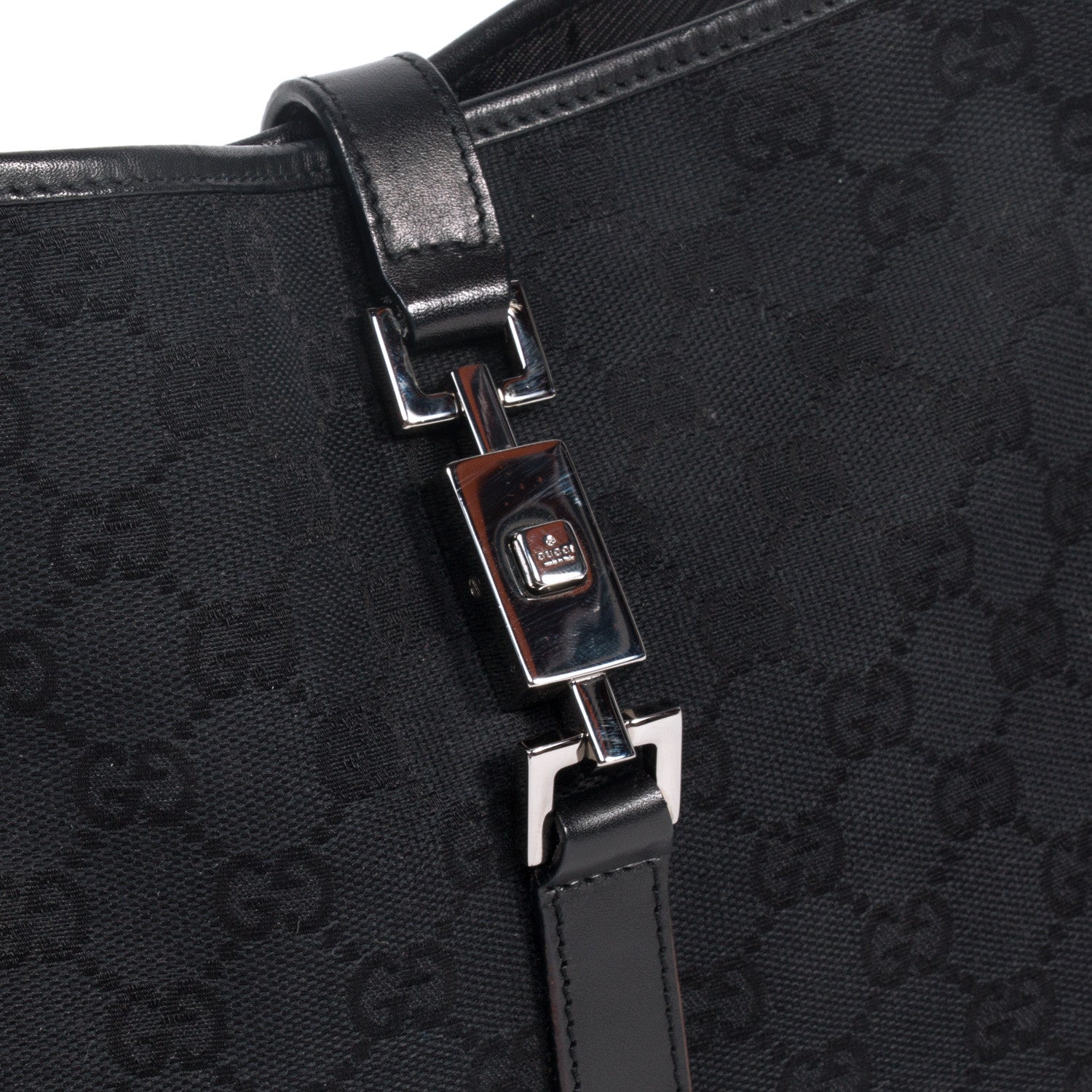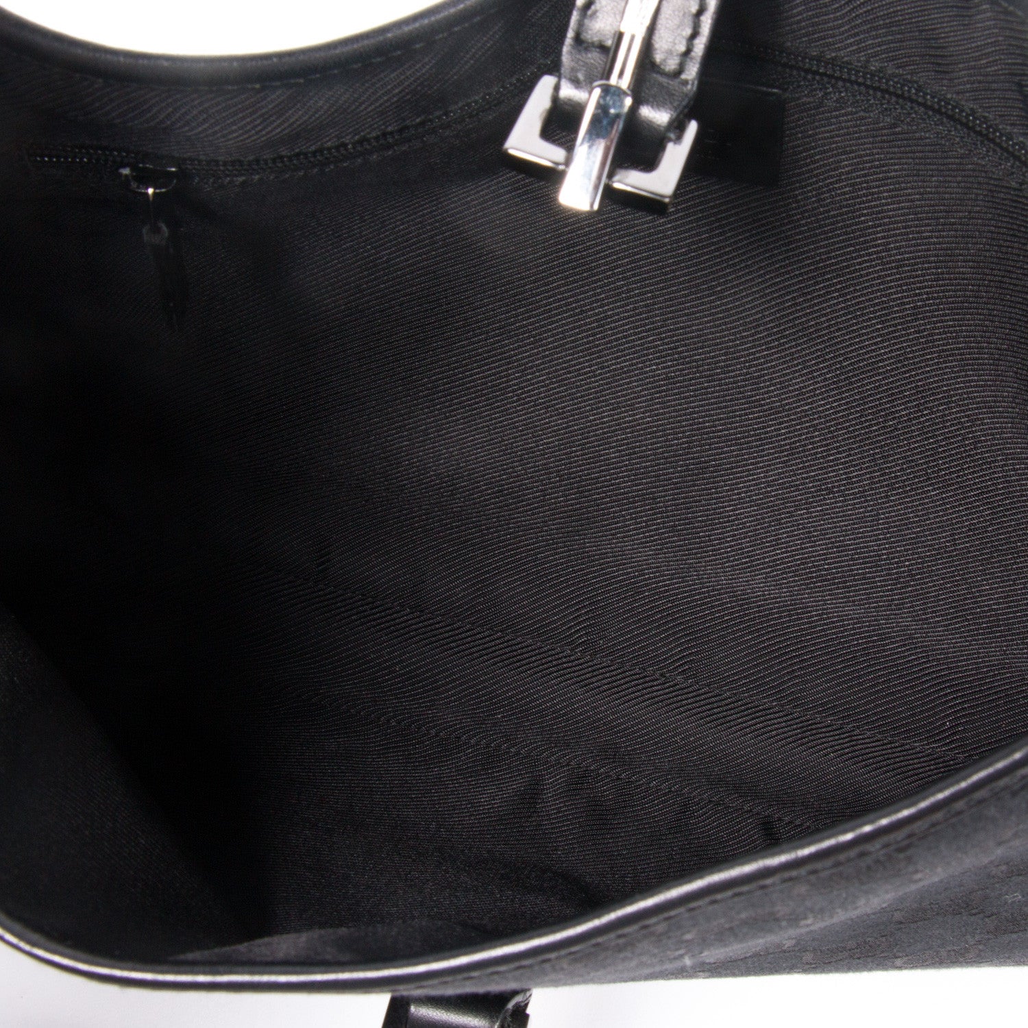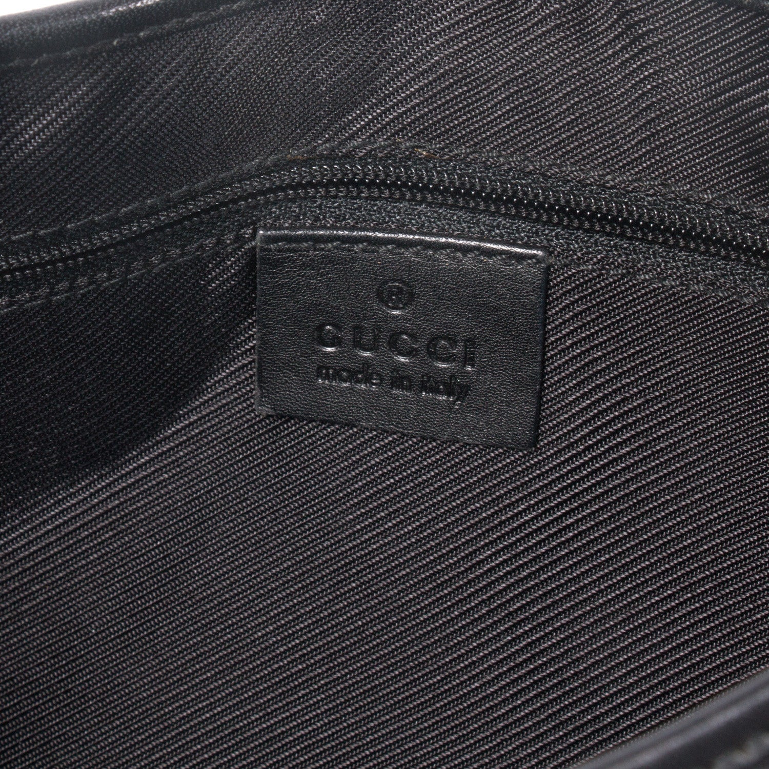 Details: Black GG Canvas / Silver Tone Hardware / Tonal Stitching / Black Leather Trim / Single Black Leather Handle / Black Satin Lining / Single Compartment / Single Zip Pocket At Interior / Piston Lock Closure At Front