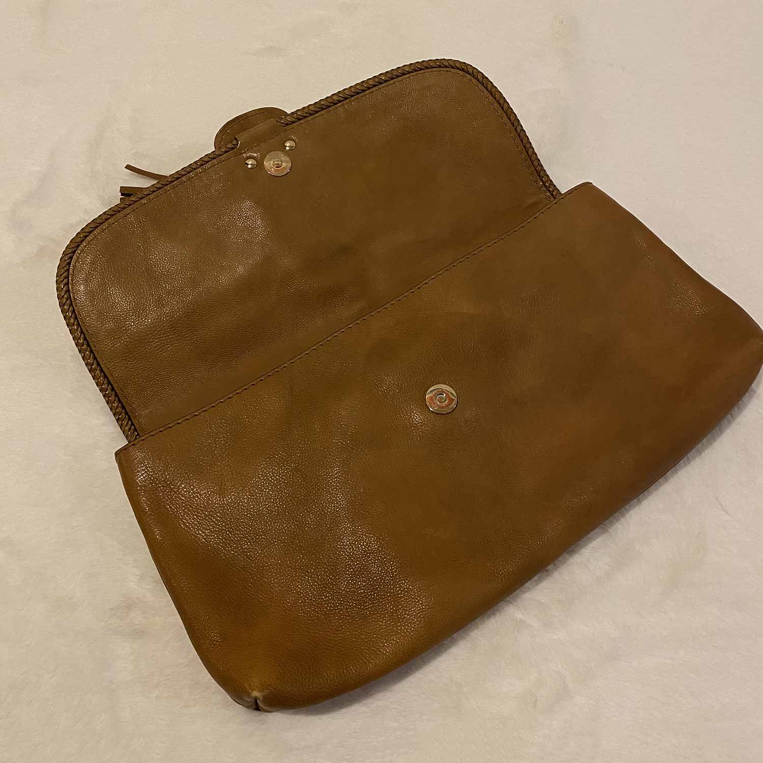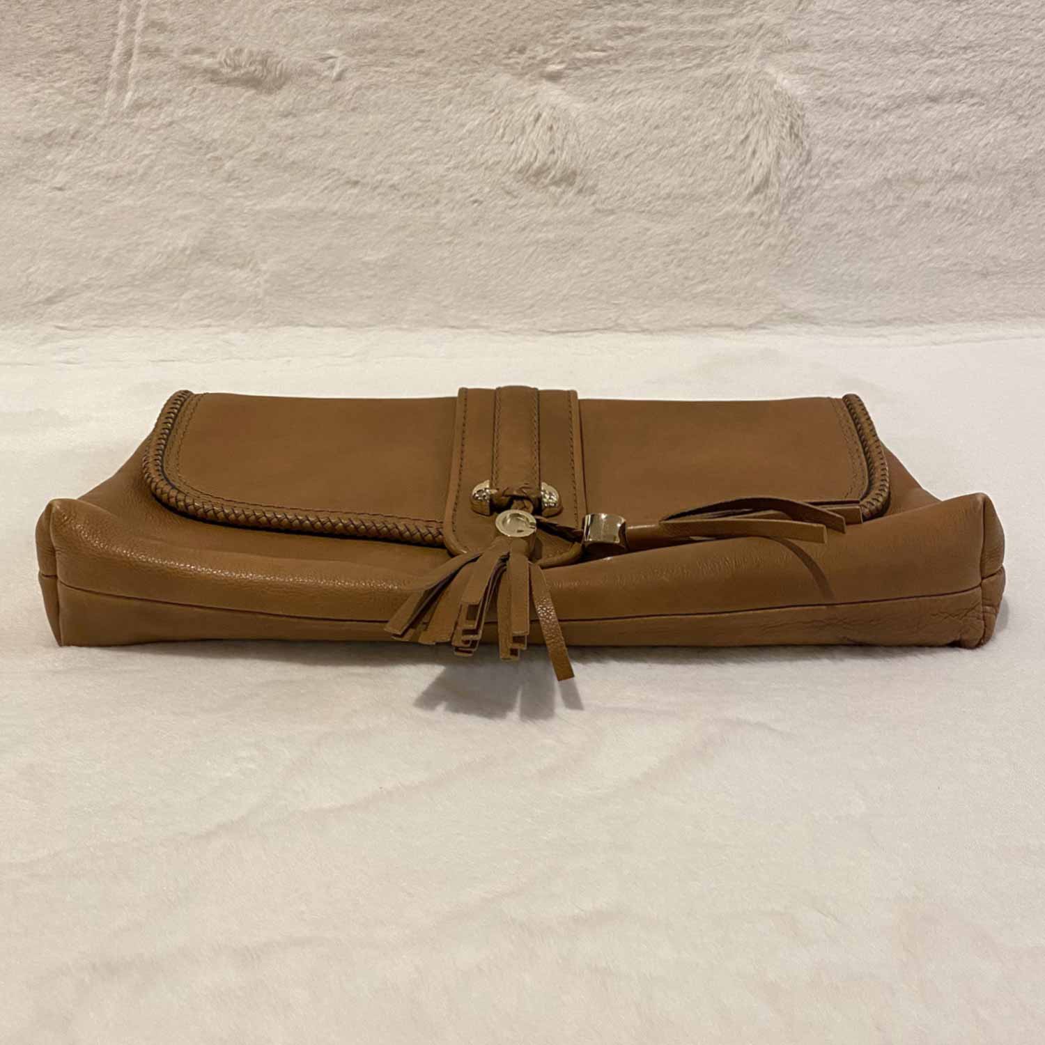 Description: Authentic Pre-Owned Gucci Leather Marrakech Tassel Clutch