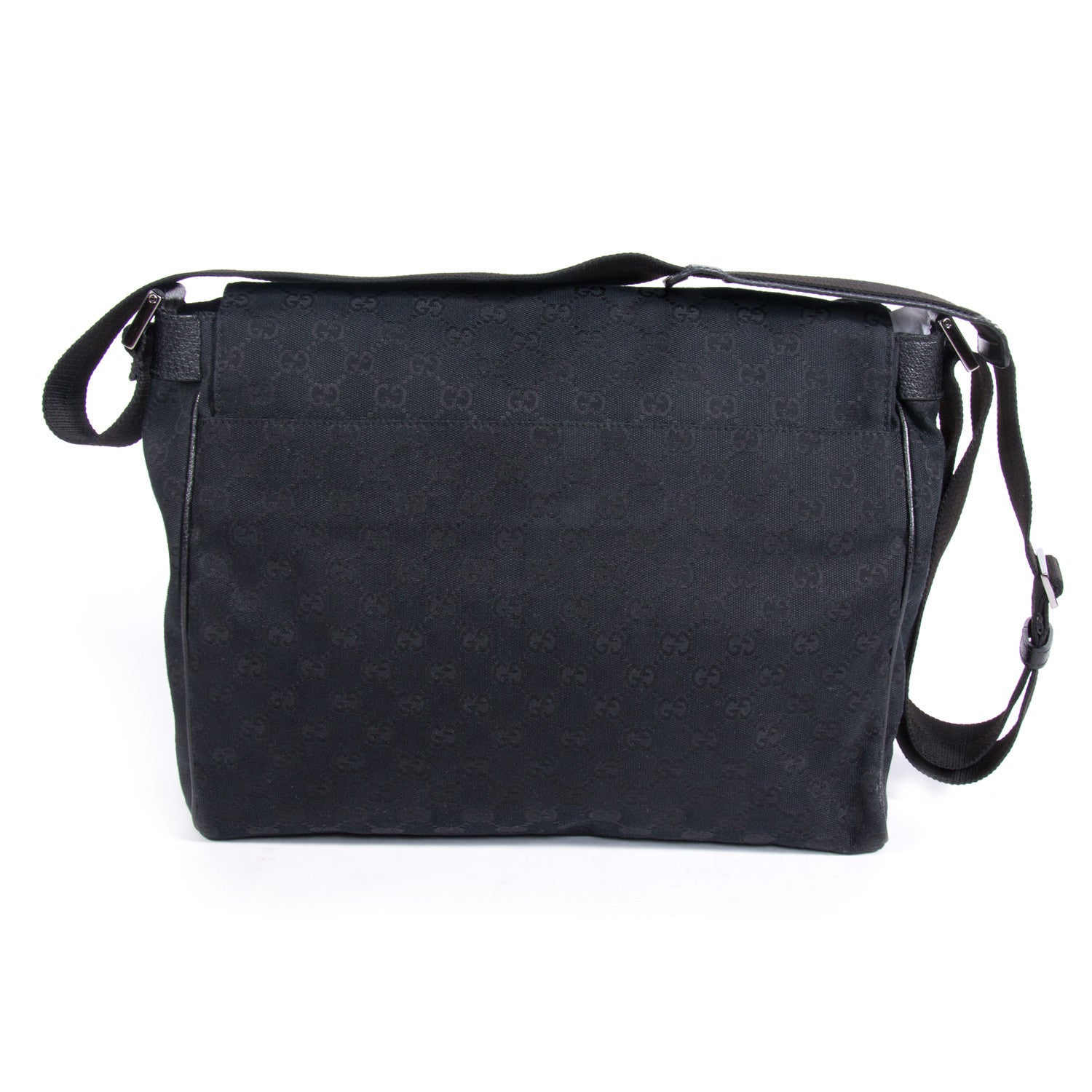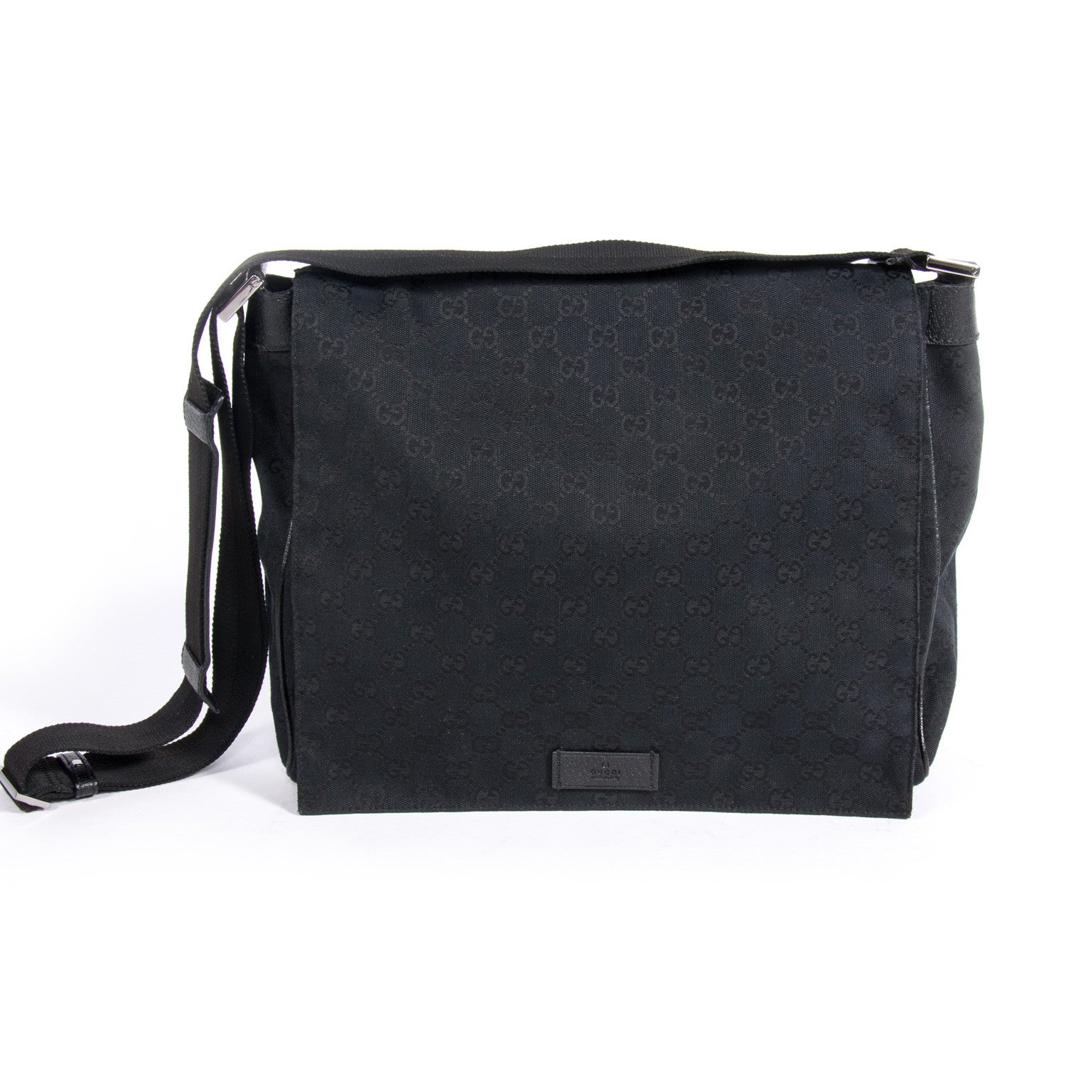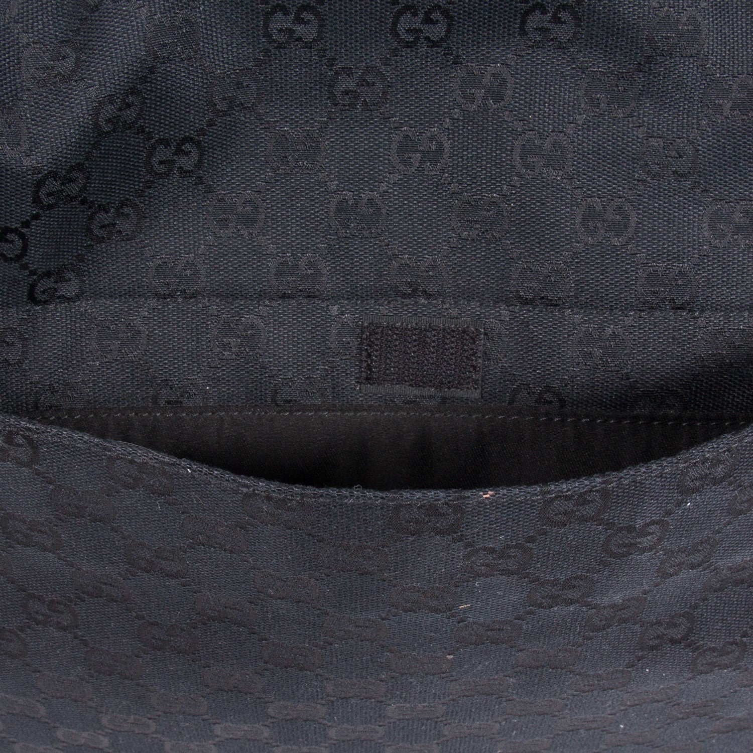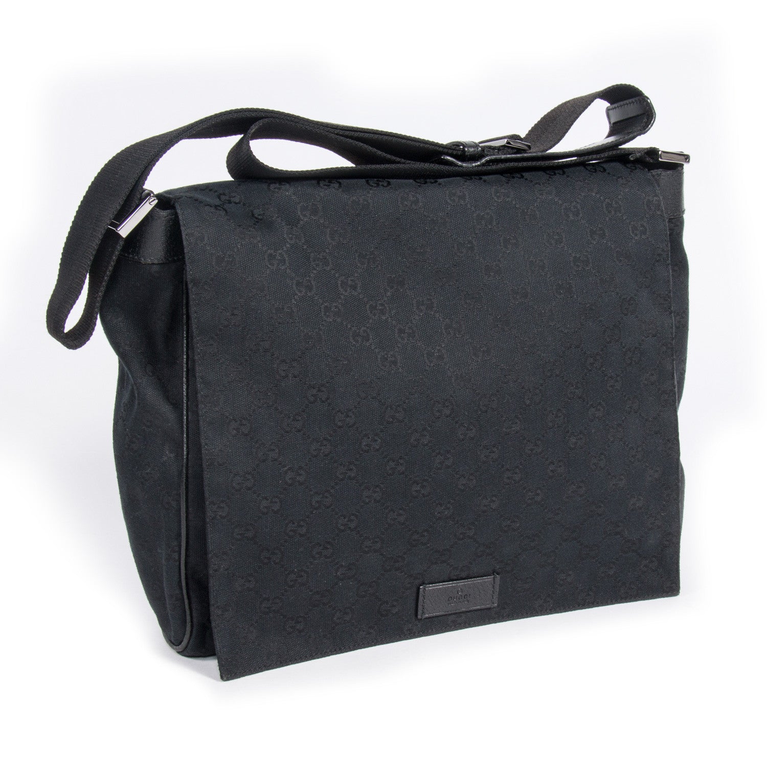 Details: Black GG Canvas / Cross Body Messenger / Adjustable Shoulder Strap / Silver Tone Hardware / Black Interior Woven Lining / Single Compartment / Zip Pocket At One Interior Wall / Dual Slit And Pen Pockets At Second Interior Wall / Single Exterior Pocket / Snap Magnetic Closure At Front