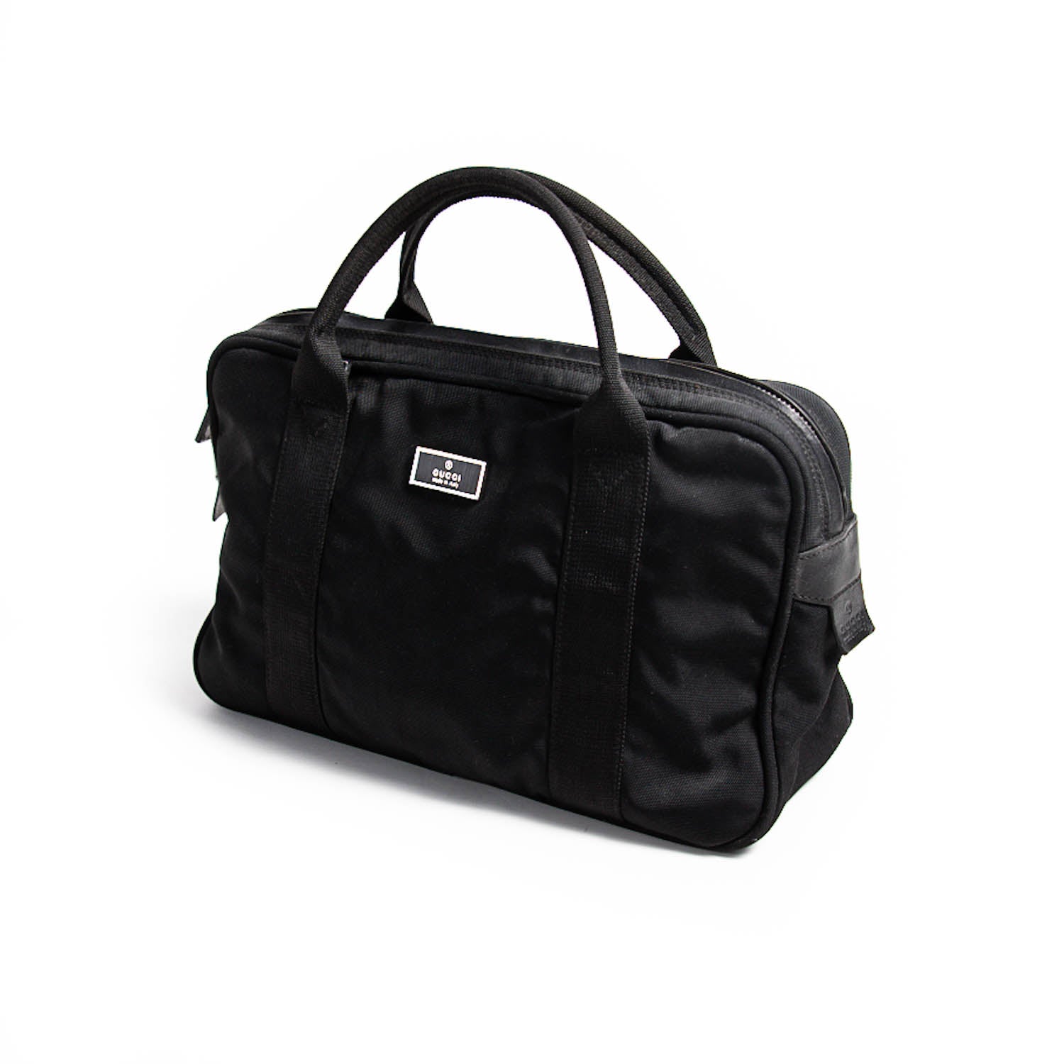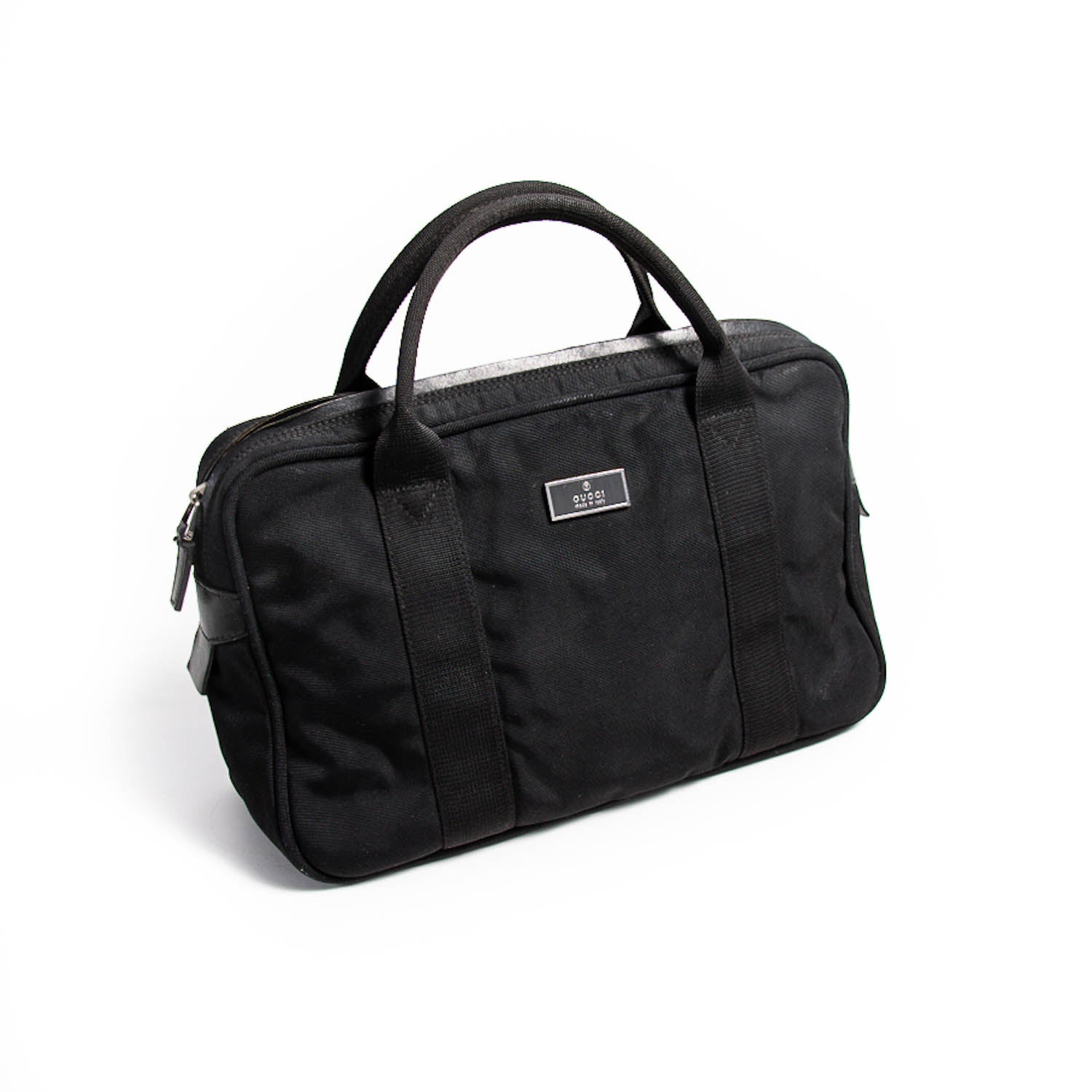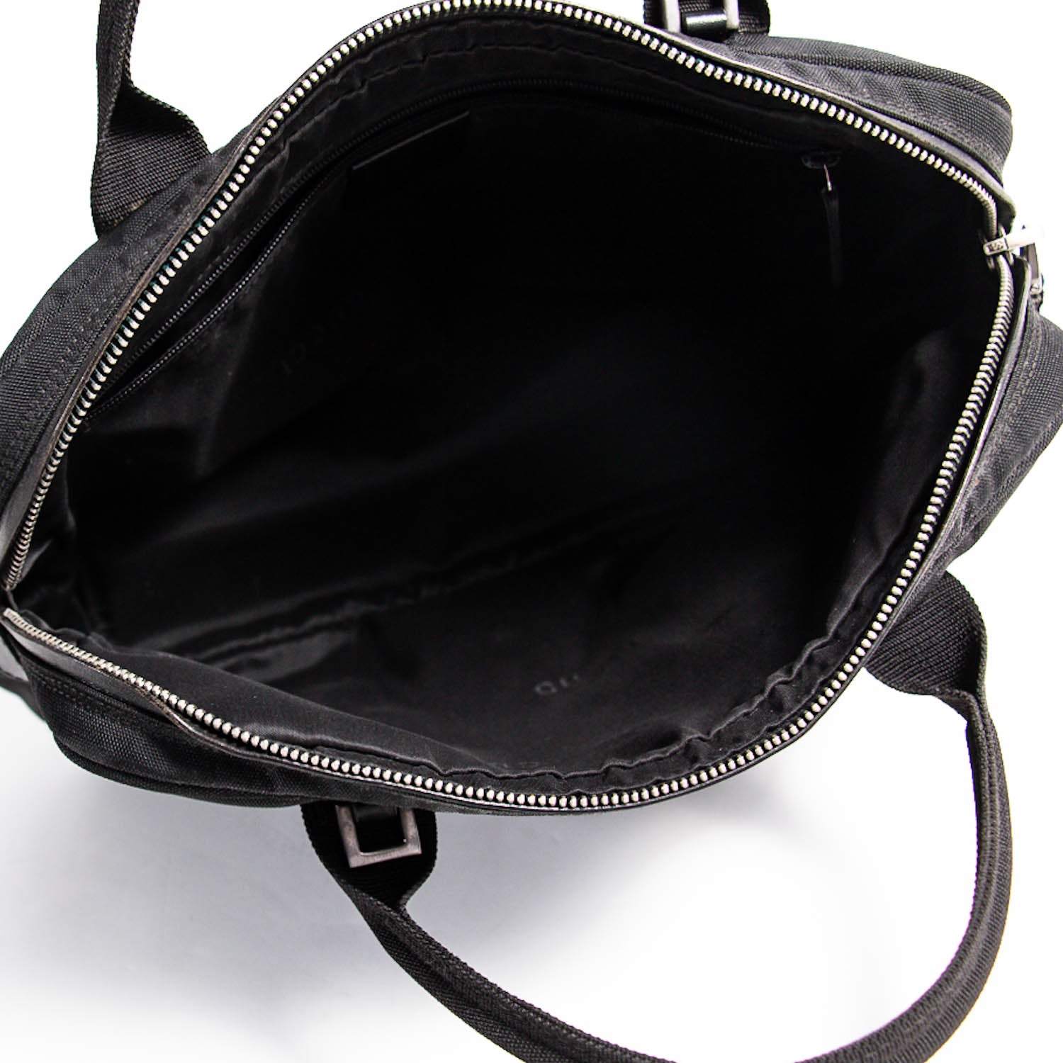 Details: Black Nylon and Canvas / Silver-Tone Hardware / Dual Rolled Handles / Logo at Front / Woven Interior / Zipper Pocket at Inside / Zipper Closure