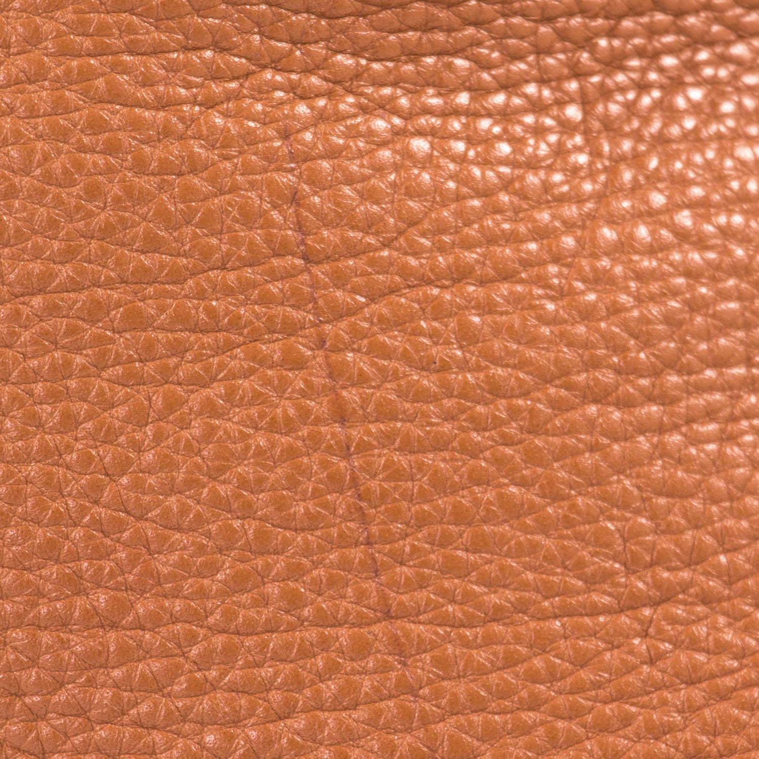 Details: Gold Brown Leather / Gold-Tone Hardware / Dual Chain-Link with Leather Pad Shoulder Strap / Logo at Front Face / Tassel Embellishment / Natural Lining at Interior / Three Pockets one with Zipper / Lobster Clasp Closure at Top
