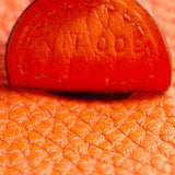 Details: Feu Orange Clemence Leather / Palladium Hardware / Tricolor Shoulder Strap (Blue, Yellow, and Orange) /Large Perforated H Icon In Circle At Front / Feu Untreated Leather Lining / Snap Closure at Back