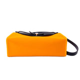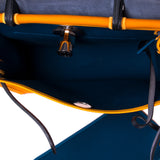 Details: Yellow Toile Canvas / Palladium Hardware / Black Leather Trim / Double Rolled Handles / Removable Single Shoulder Strap / Zip Pocket at Exterior Back /  Attached Blue Pouch at Interior / Blue Canvas Lining / One Compartment / Pull-Through Closure at Front