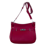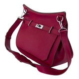 Details: Ruby Red Clemence Leather / Palladium Hardware / Detachable Adjustable Shoulder Strap / Single Compartment with Zipper Pocket and Two Flat Pockets / Pull-Through with Turn-Lock Closure at Front Flap