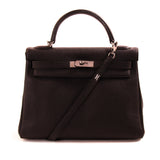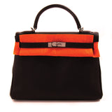 Description: Authentic Pre-Owned Hermès Kelly 32 Retourne Noir Togo Leather