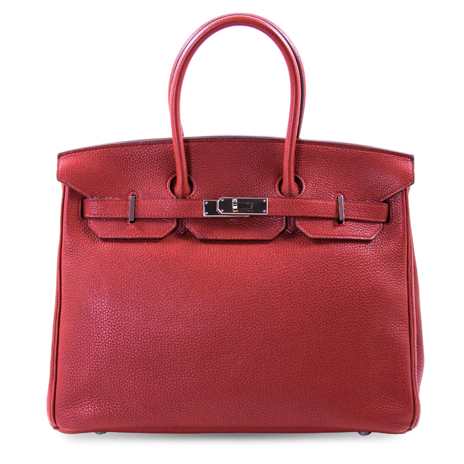 Description: Authentic Hermès Birkin 35 Red Ruby Togo Leather