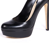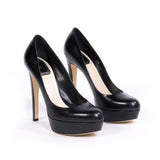 Details: From 2013 Spring Collection / Black Leather / Sky High Platform Pumps / Rounded Toe / Inside Leather / Initialed "CD" At Counter / Covered Heel