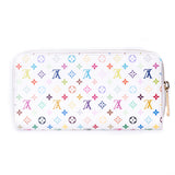 Details: From Takashi Murakami Limited Edition Collection / White Multicolor Monogram Coated Canvas / Brass Hardware / Inside Pink Leather / Gold Tone Zipper / Six Bill Compartment / Eight Card Slots / Single Zipper Compartment