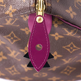 Details: Limited Edition From The Fall/Winter 2015 Collection /Brown And Tan Monogram Coated Canvas / Brass Hardware / Purple Leather Accent Throughout / Dual Purple Leather Rolled Handles / Multicolor Leather Accents Throughout The Handles, Zipper, Keys And Lock / Purple Canvas Lining / Single Interior Pocket At Wall / Zip Pocket On Top