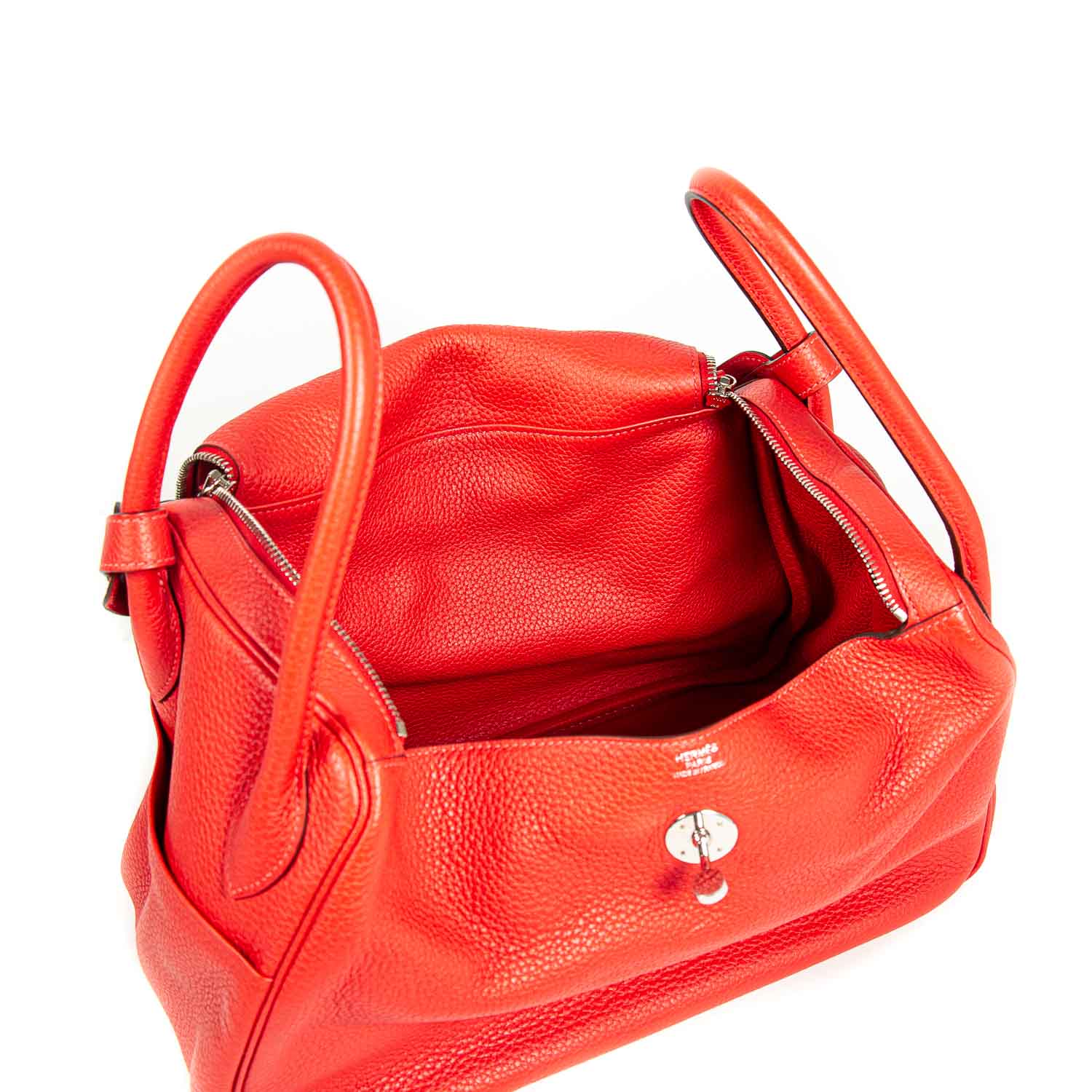 Description: Authentic Pre-Owned Hermès Lindy 34 Rouge Pivoine Clemence