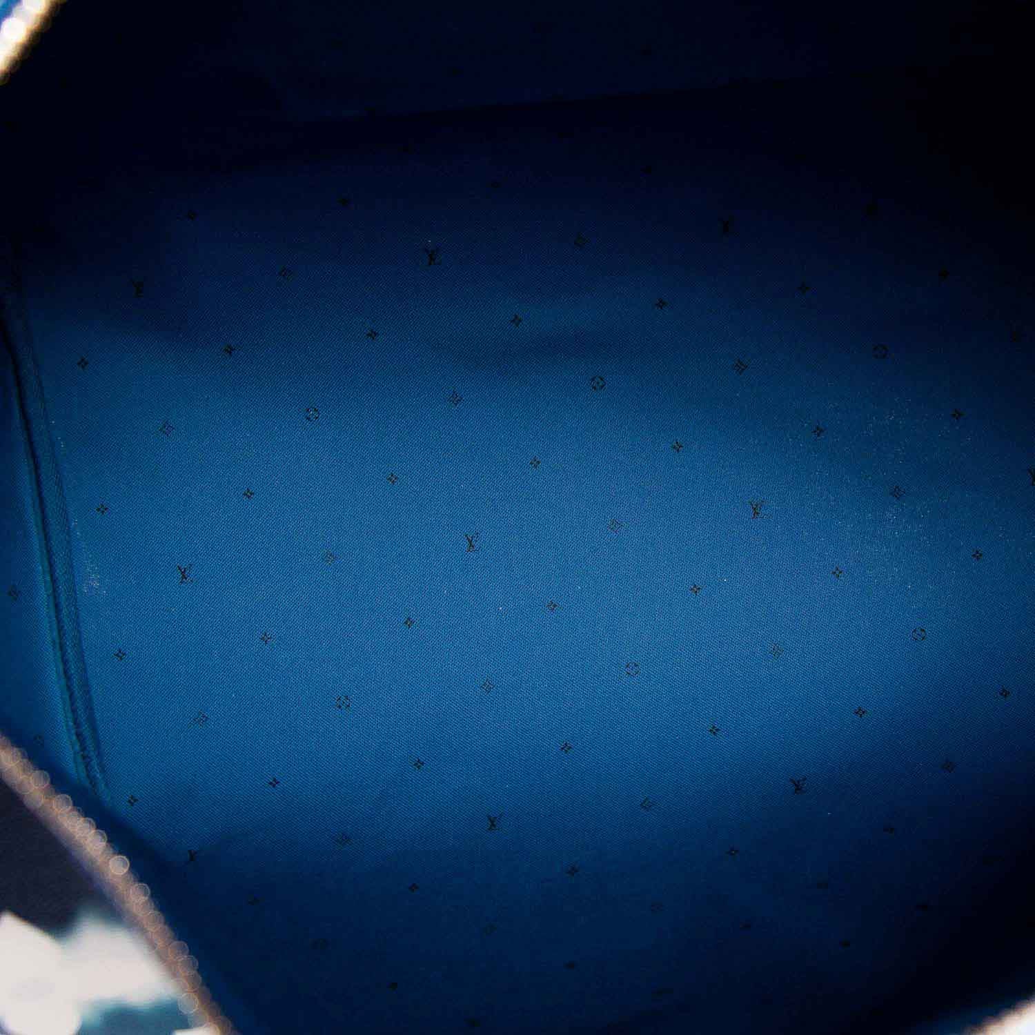 Details: Blue Monogram Giant Coated Canvas / Silver-Tone Hardware / Double-Zip Closure / Adjustable and Removable Shoulder Strap / Dual Rolled Handles / Blue Fabric Interior Lining / Zipper Pocket at Inside