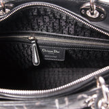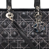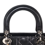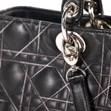 Details: Black Cannage Quilted Leather / Silver-Tone Hardware / Dual Rolled Handles / Detachable Shoulder Strap / Dior Logo Letters Charm At Front / Protective Studs At Base / Black Diorissimo Canvas Lining / Zip Pocket At Interior Wall / Zip Closure At Top