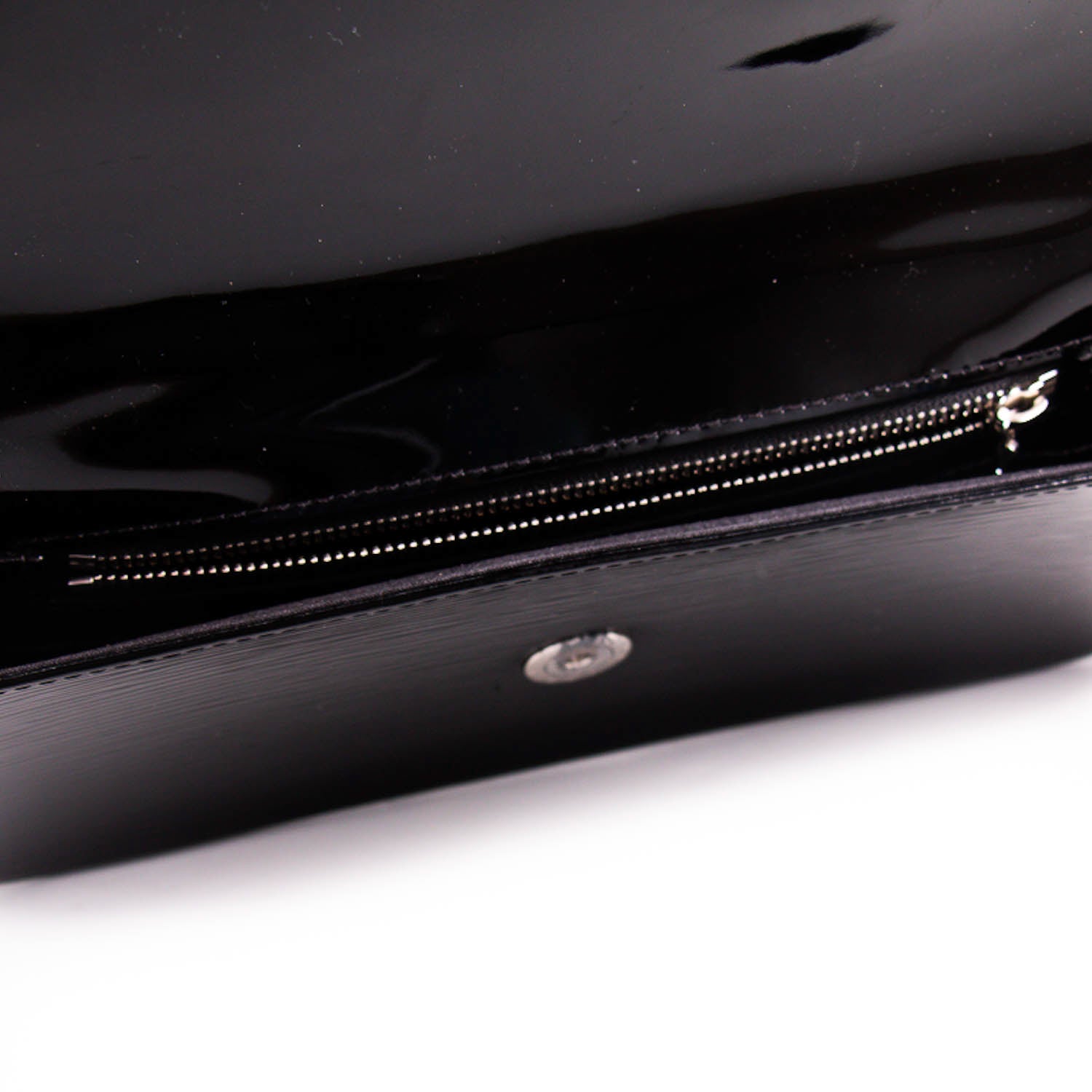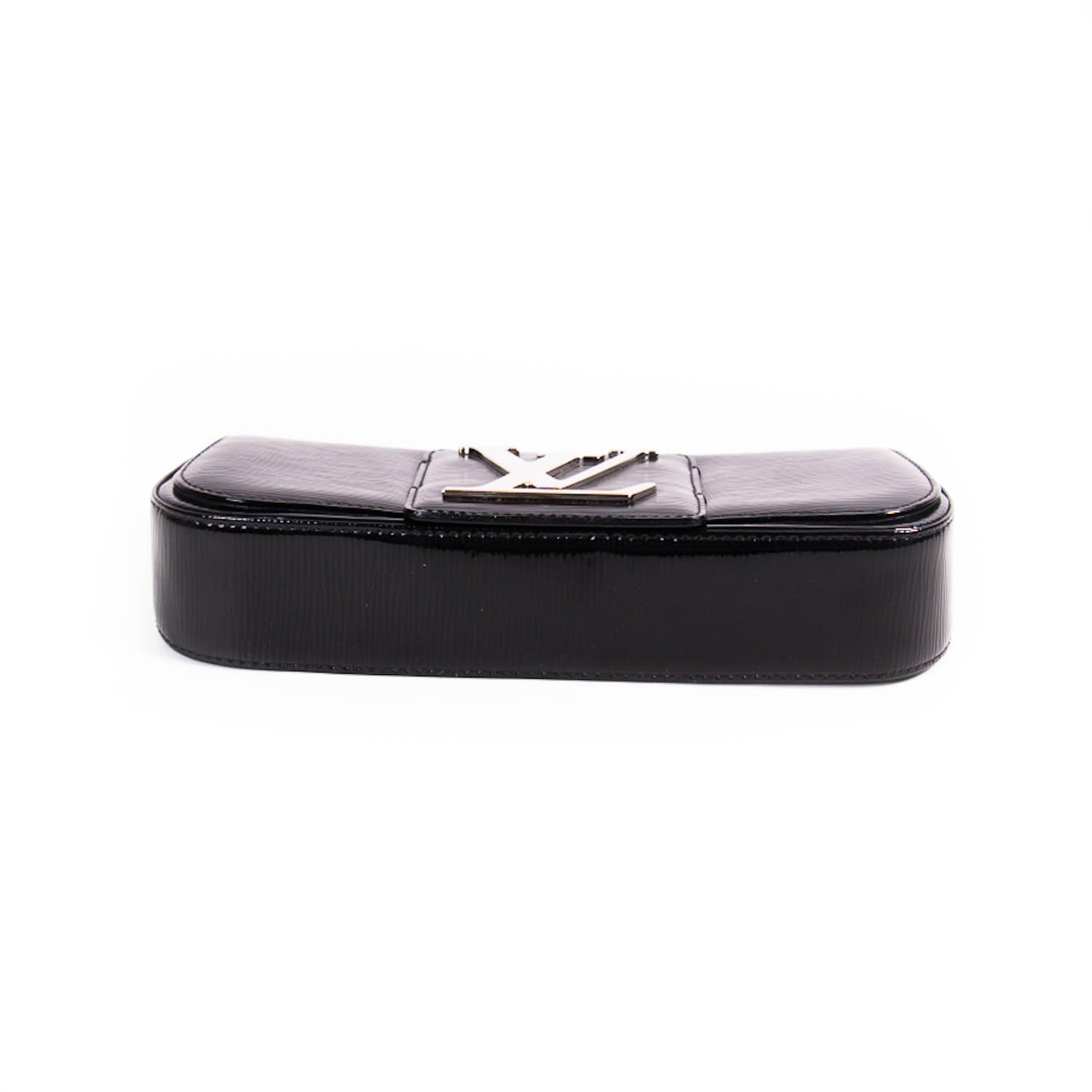 Details: Black Epi Leather / Silver-Tone Hardware / Logo at Front / Fabric Lining / Single Compartment / Zipper Pocket at Inside / Magnetic Snap Closure at Front Face