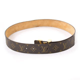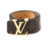 Details: Brown and Tan Monogram Coated Canvas / Gold-Tone Buckle / L.V Initials Buckles / Peg-In Hole