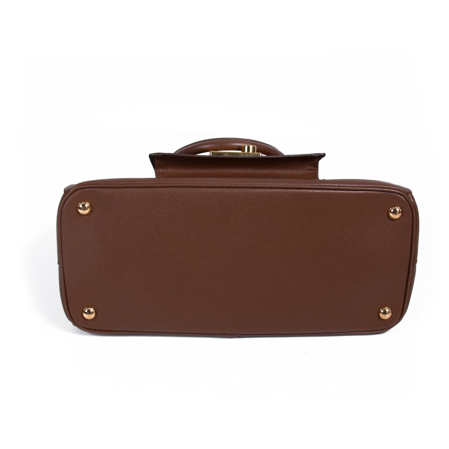 Details: Brown Saffiano Leather / Gold Tone Hardware / Dual Rolled Handles / Adjustable and Removable Shoulder Strap / Dual Zipper Exterior Pocket / Exterior Small Pocket at Front / One Zip Pocket and Three Slit Pocket at Interior