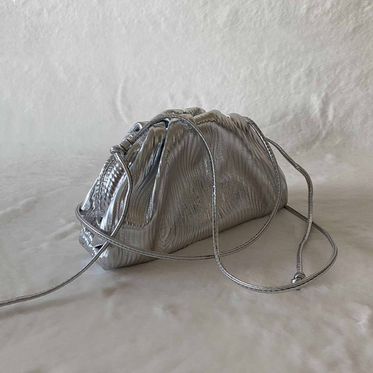 Silver Metallic Leather / Gold-Tone Hardware