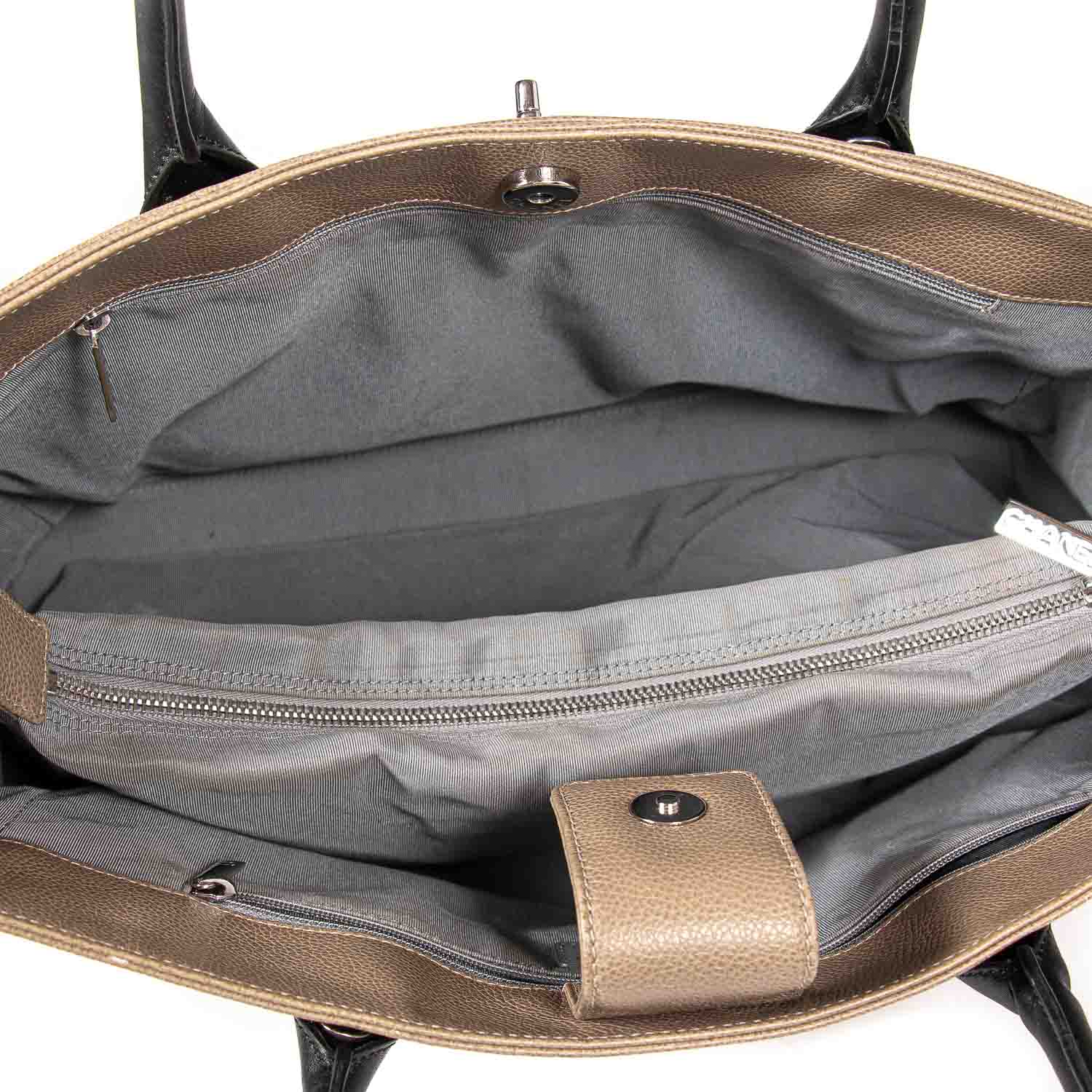 One Compartment in Grey Grosgrain Lining Separated by a Detachable Zipper Pouch