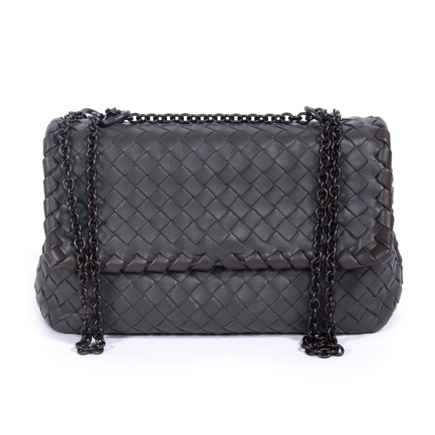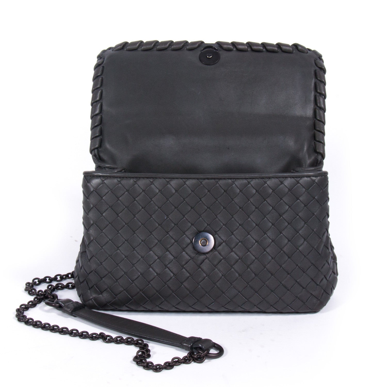 Details: Intrecciato Woven Lambskin Leather / Shoulder Bag / Crossbody / Leather Shoulder Strap With Chain Insets / Flap Top With Snap Closure / Interior Suede Lining / Two Large Inside Compartments And 1 Small Inside Compartment For Cards