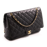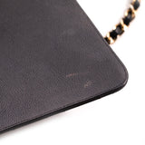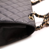 Details: Black Caviar Leather / Gold Tone Hardware / Dual Chain-Link Leather Shoulder Strap / Black Leather at Interior / Single Large Compartment / Flat and Zip Pocket at Inside / Turn Lock Closure at Front