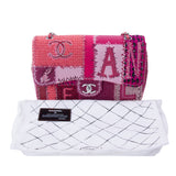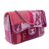 Details: Pink, Orange, Grey and Orange Canvas, Tweed and Leather / Patchwork Embellishment Details ? Silver-Tone Hardware / Chain-Link and Leather Shoulder Strap / Leather and Fabric Interior Lining / Zipper and Flat Interior Pocket / Turn Lock Closure at Front Flap