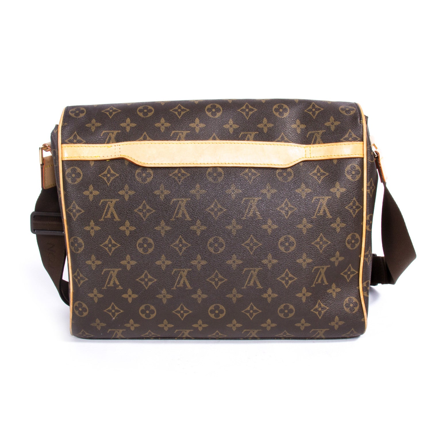 Details: Brown And Tan Monogram Coated Canvas / Brass Hardware / Tan Vachetta Leather Trim / Flat Adjustable Shoulder Strap / Dual Concealed Pockets at Front Flap / Brown Canvas Lining / Two Pockets at Interior wall / Single Zipper Pocket at Back Wall / Button Closure at Front