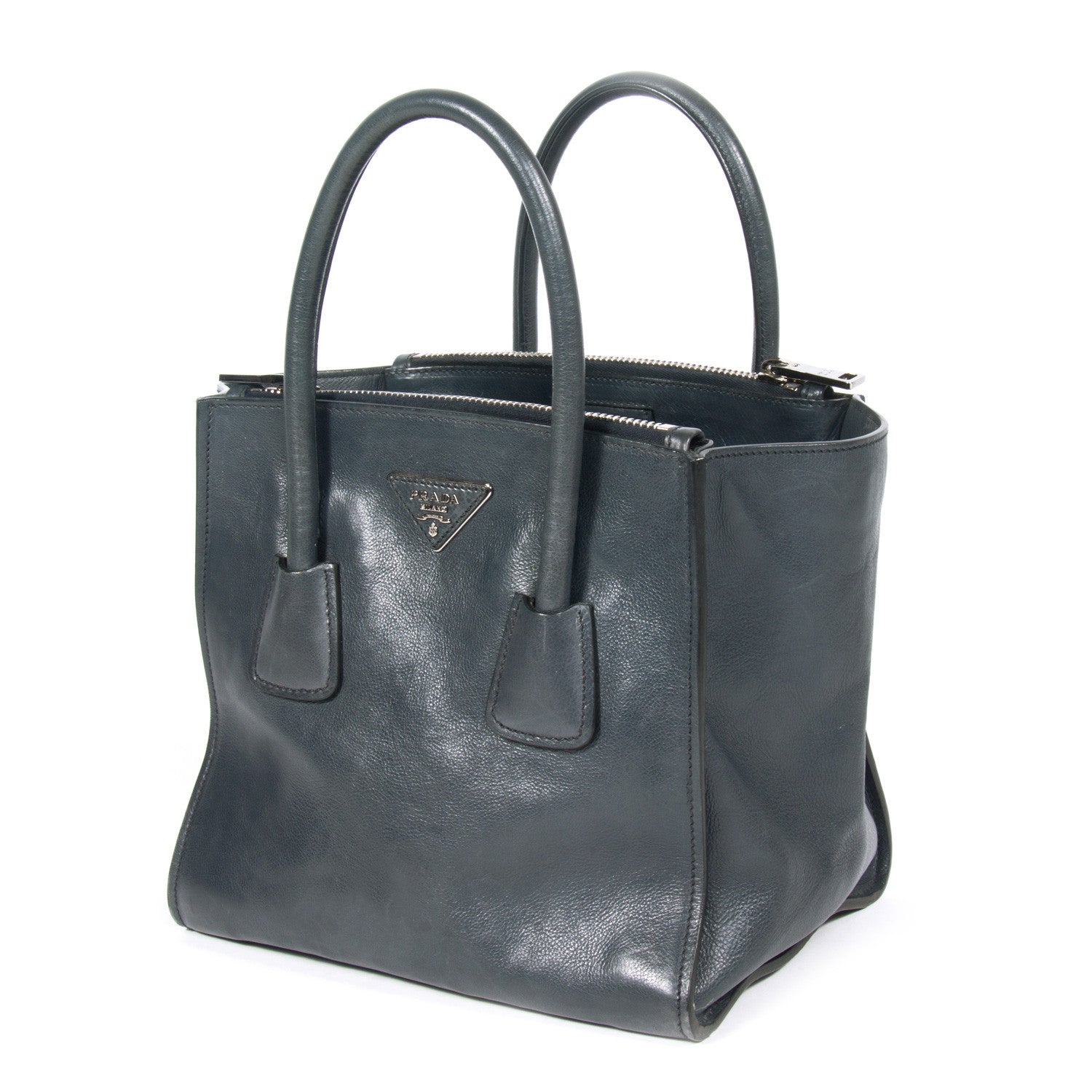 Description: Authentic Prada Glace Calf Twin Tote in Denim Color