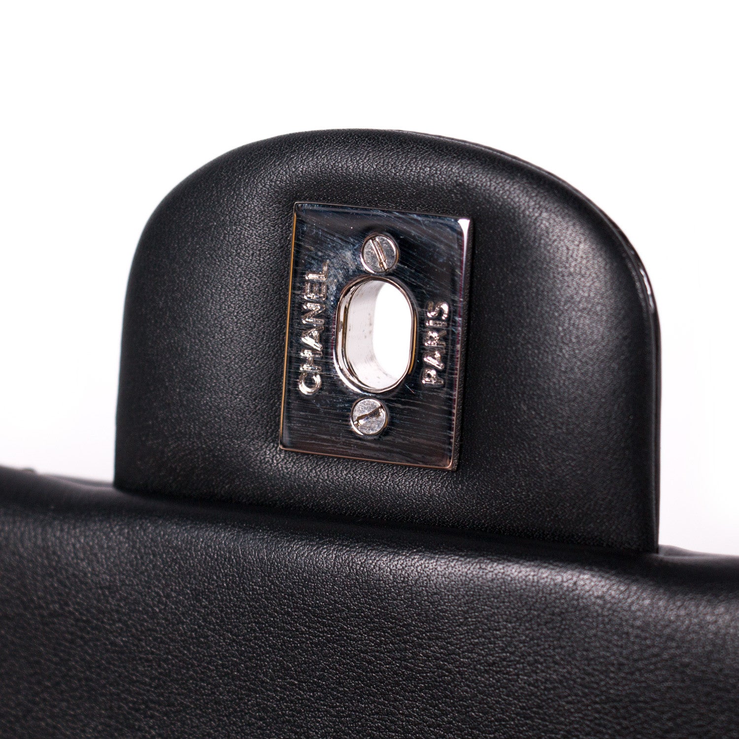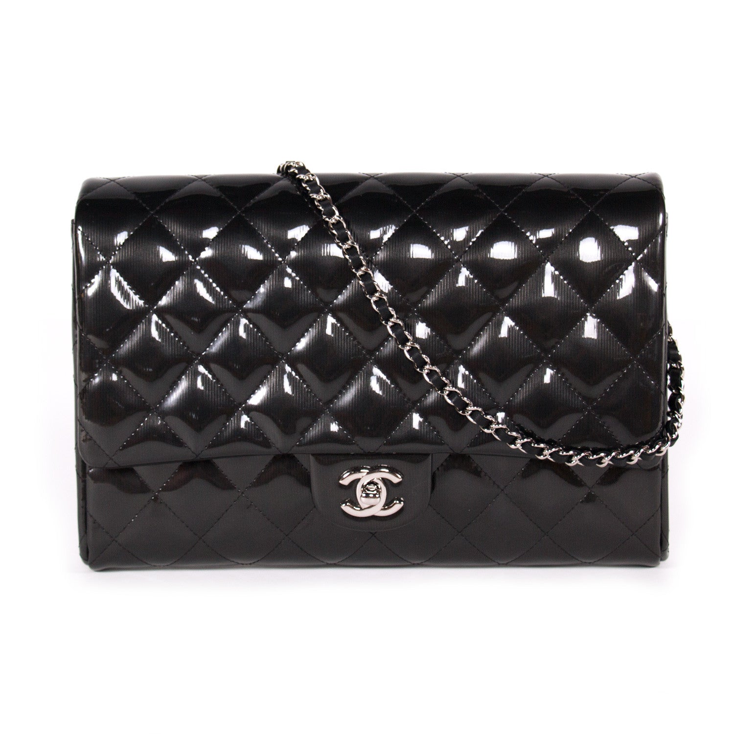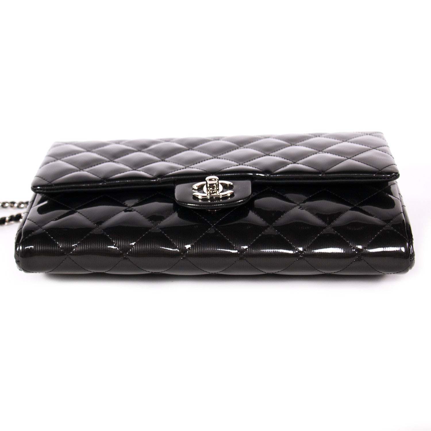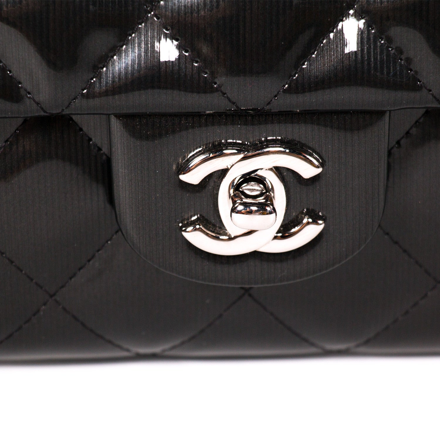 Details: Black Patent Quilted Leather / Silver-Tone Hardware / Single Shoulder Strap / Exterior Pocket At Back / Single Compartment / Flat Pocket At Interior / Turn Lock Closure At Front Flap