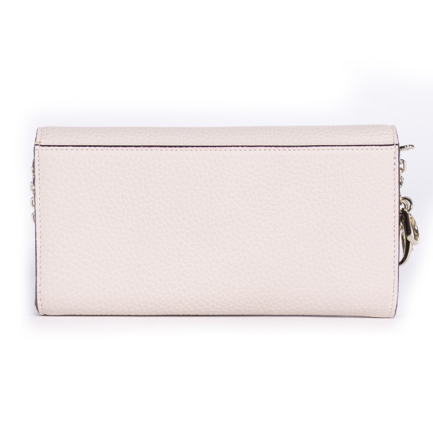 Details: From 2015 Collection / Nude Lambskin Leather / Gold Tone Hardware / Detachable Handle Chain / Exterior Slit Pocket At Back / Brown Leather Interior Lining / Detachable Dior Logo Chain At Edges / Three Interior Compartments, One With Zip Closure / Twelve Card Slots At Interior Walls / Snap Closure At Front