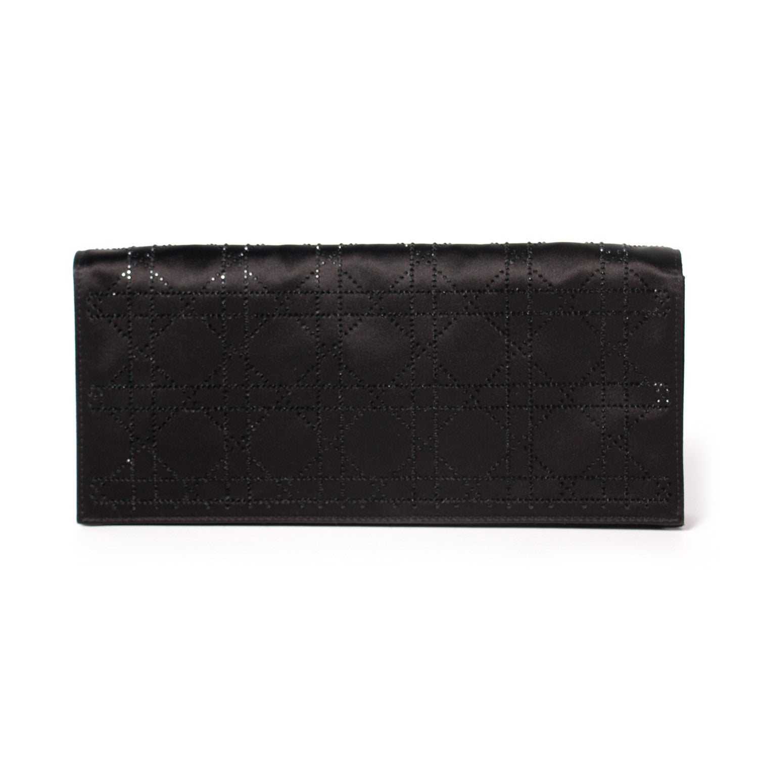 Description: Authentic Christian Dior Lady Dior Black Cannage Satin Clutch