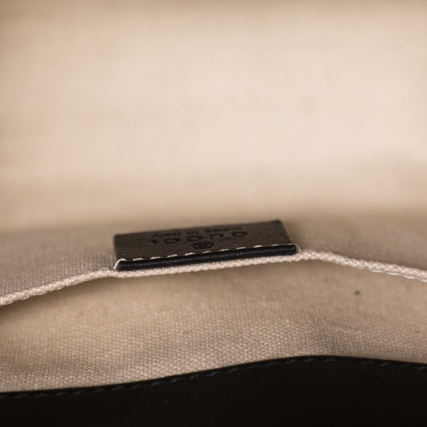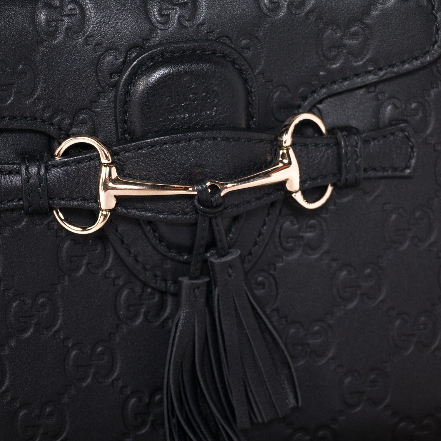 Details: Black Guccissima Leather / Gold Tone Hardware / Shoulder Strap With Chain Link Accent And Leather Pad / Natural Canvas Interior Lining / Single Slit Pocket At Interior Wall / Fold-in Flap Closure At Front / Horsebit And Tassel Embellishments At Front