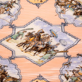 Details: Light Orange, Blue, Grey and Yellow Silk / "Les Cheavaux Des Moghols" Printed Theme / Degreaded Waved Square Shape