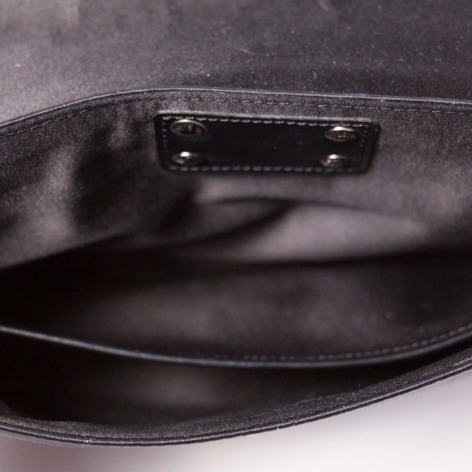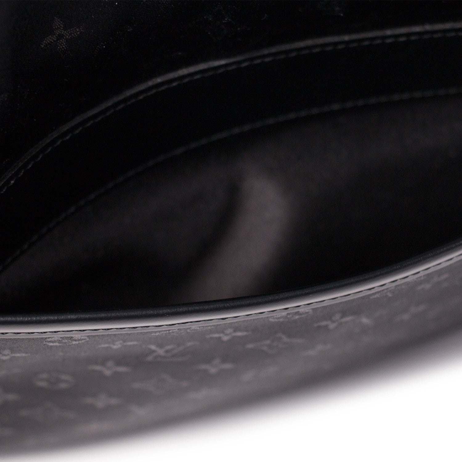Details: Black Monogram Silk / Silver-Tone Hardware / Black Leather Accents / Adjustable Single Shoulder Strap / Multicolor Vernis And Epi Leather At Front / Damier Sauvage And Snakeskin Appliqué At Front / Flat Pocket At Exterior Back / Black Silk Interior With Slit Pocket / Magnetic Flap Closure At Front