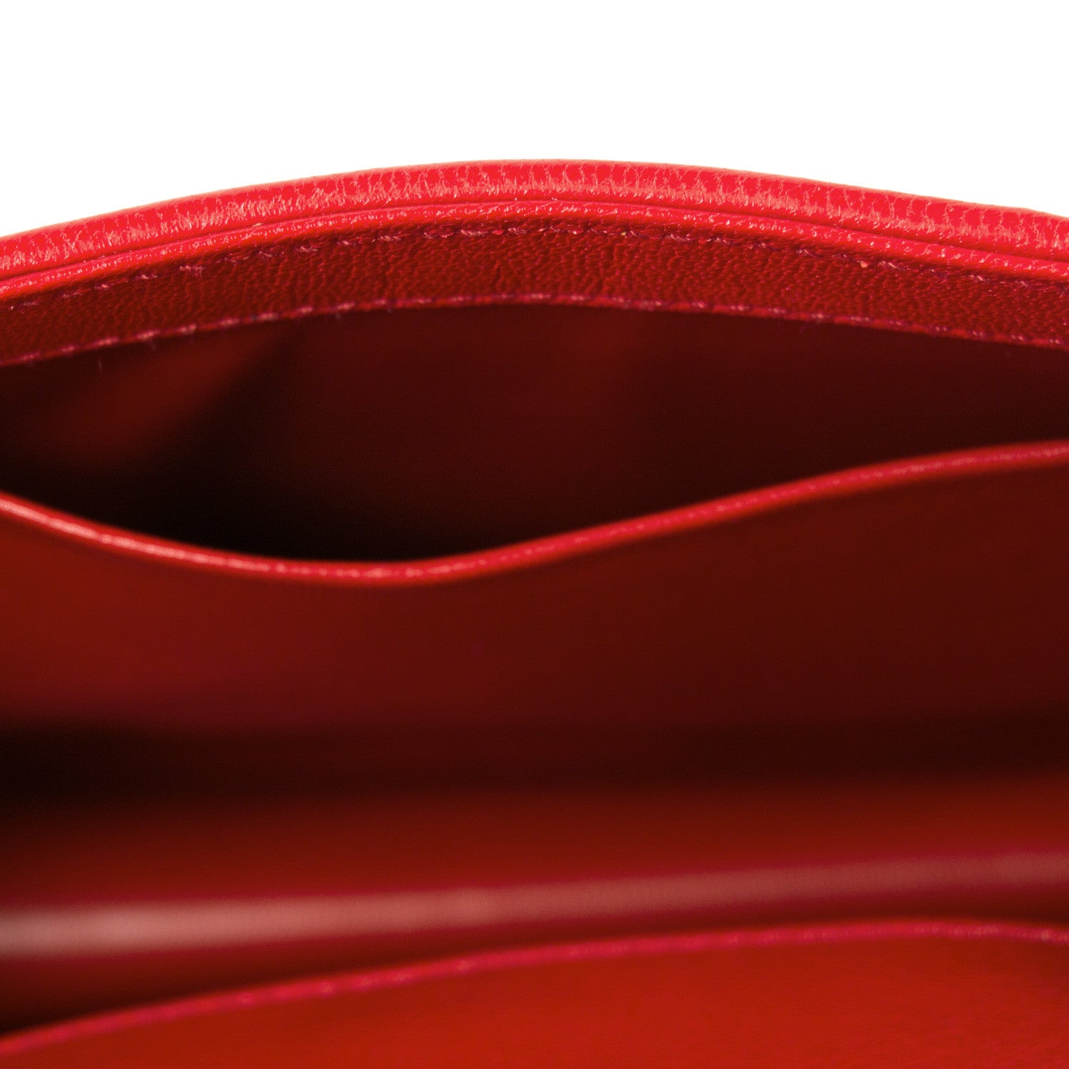 Details: White+Fire Woven Madras-Pattern Lamb Leather / Silver-Tone Hardware / Chain-Link Shoulder Strap With Leather Accent / Red Napa Leather Interior Lining / Single Compartment / Dual Pockets At Wall One With Magnetic Snap Closure / Flap Top With Front Lock Clasp.