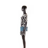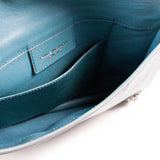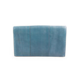 Details: Blue Snake Skin Leather / Brushed Metal Hardware / Zipper at Front / Leather Lining / Single Compartment / Flat Pocket / Magnetic Snap Closure