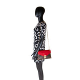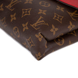 Details: Brown Monogram Coated Canvas / Gold-Tone Hardware / Red Calf Leather Accent / Chain Shoulder Strap / Alcantara Interior Lining / Three Compartments / Dual Slit Pockets, One with Zipper / S-Lock at Front Flap