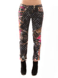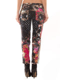 Details: Floral Print / Front Fly Closure / Four Pockets / Gold-Tone Button Accents / Quilted Stitching at Sides