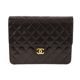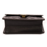 Details: Black Quilted Lambskin Leather / Gold Tone Hardware / Single Chain-Link And Leather Accent Shoulder Strap / Burgundy Leather Interior Lining / Single Zip Pocket At Interior Wall / Flap Closure At Front With Push Lock
