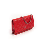 Description: Authentic Pre-Owned Chanel Red Caviar Wallet on Chain