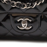 Details: Black Patent Quilted Leather / Silver-Tone Hardware / Dual Chain-Link Leather Shoulder Strap / Exterior Pocket at Back / Black Leather Interior Lining / Single Compartment / Dual Pockets One With Zip Closure / Turn-Lock Closure at Front Flap