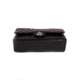 Details: Black Caviar Leather / Silver-Tone Hardware / Chain-Link and Leather Shoulder Strap / Burgundy Leather Lining / Dual Compartments with Two Flat Pockets at Inside / Dual Flap, One with Push-Button and Another with Turn Lock Closure