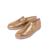Description: Authentic Pre-Owned Chanel Gold Metallic Leather Espadrilles Loafers