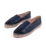 Details: Navy Blue and Black Lambskin Leather / CC Logo at Vamps / Jute Trims / Rubber Sole