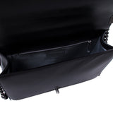 Description: Black Lambskin Leather / Brushed Metal Hardware / Chain-Link and Leather Shoulder Strap / Single Compartment / Grey Fabric Lining / Dual Slit and One Zipper Pocket at Inside / S-Lock Closure at Front Flap