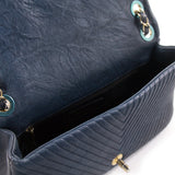 Details: Navy Blue Quilted Leather / Gold Tone Hardware / Dual Chain-Link Leather Shoulder Strap / Black Woven Lining / Zip Pocket at Wall / CC Logo at Front Face / Turn Lock Closure at Front Flap