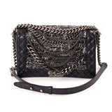 Description: Authentic Pre-Owned Chanel New Medium Enchained Leather Tweed Boy Flap Bag