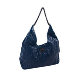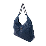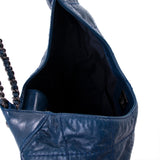 Details: Blue Quilted Distressed Calfskin Leather / Gunmetal Hardware / Chain-Link Shoulder Strap / Grosgrain Lining / Three Interior Pockets, One with Zipper Closure / CC Turn-Lock Closure at Top