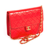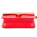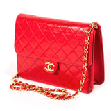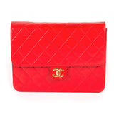 Details: Red Quilted Lambskin Leather / Gold Tone Hardware / Single Chain-Link And Leather Shoulder Strap / Black Leather Interior Lining / Single Zip Pocket At Interior Wall / Flap Closure At Front With Push Lock