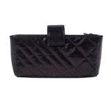 Details: Black Quilted Leather / Gunmetal Hardware / Suede Interior Lining / 3 Compartments, One with Zip Closure / Magnetic Snap Closure