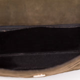 Details: Olive Green Quilted Suede / Gold Tone Hardware / Single Shoulder Strap With Chain-Link Leather Accent / Interior Black Leather / Single Zip Pocket At Wall / Tonal Leather Trim / Tassel Accents / Snap Closure At Front